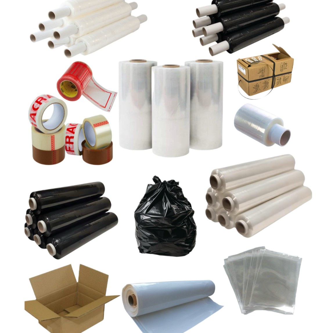 We stock and supply Blown & Cast ,machine film, Mini rolls and cello tapes ,boxes, cardboard